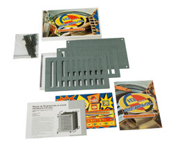 een bouwdoos, vormt eenmaal gemonteerd een metalen cd-rek. Het bijgeleverde stickervel maakt van het cd-rek een pinball machine. 1996.