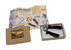 Kartonnen doosje met handknijper en gebruiksaanwijzing